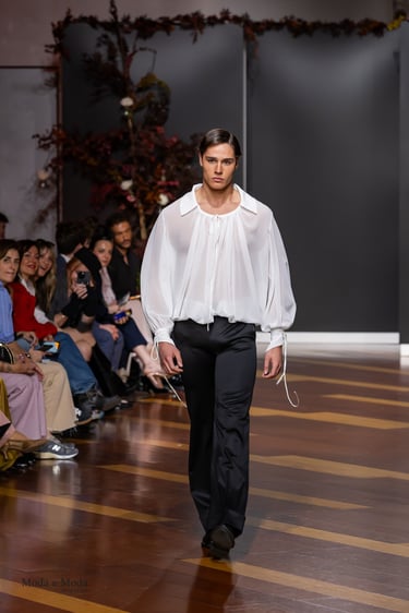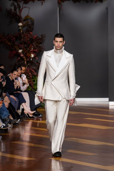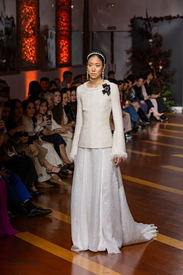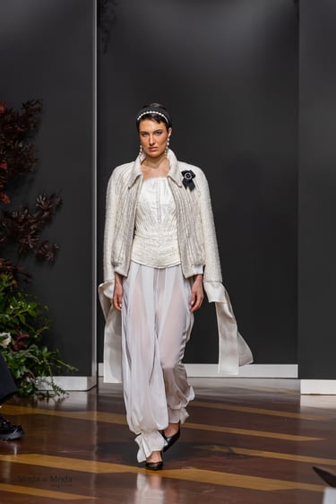 Cada silueta honra a la mujer que desafía su tiempo. Cada tejido habla de lujo, de poder y de romance prohibido. Cada detalle desde los bordados hasta las transparencias—es un homenaje a la opulencia, pero también a la libertad. Hay una tensión constante entre lo clásico y lo disruptivo, entre lo delicado y lo firme, que define el carácter de la colección.