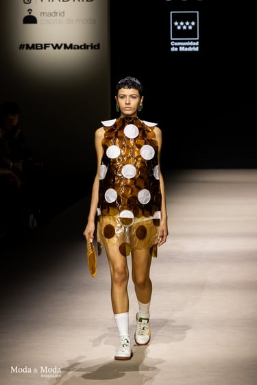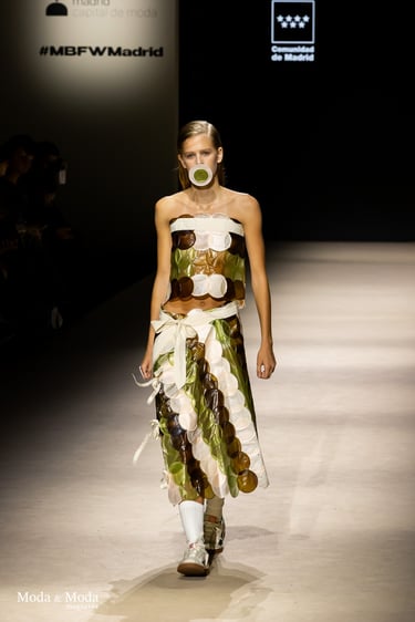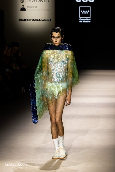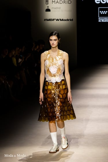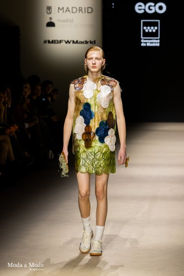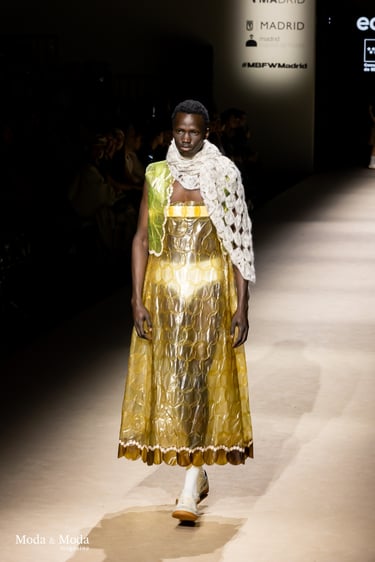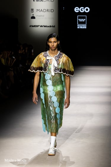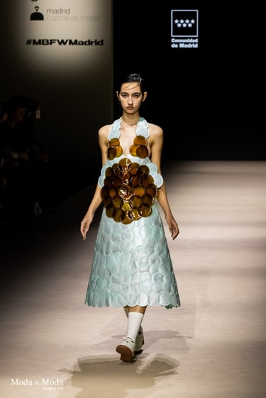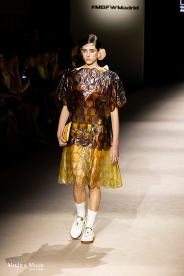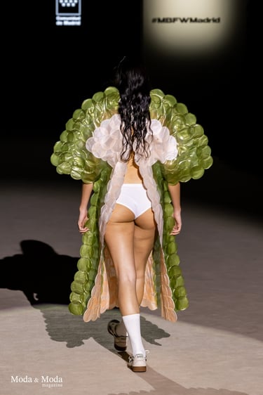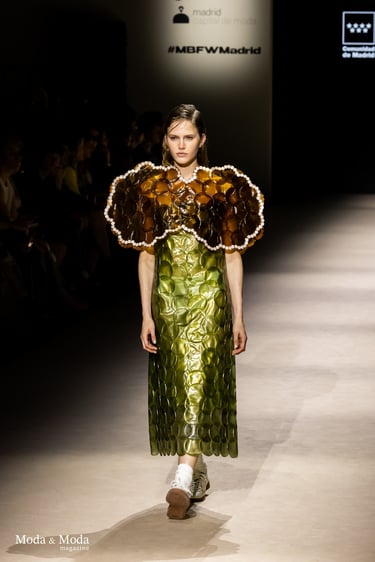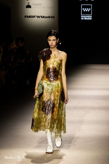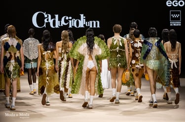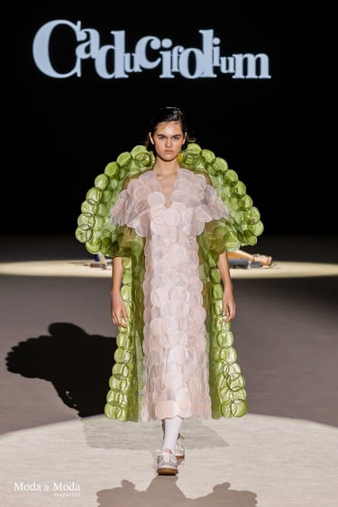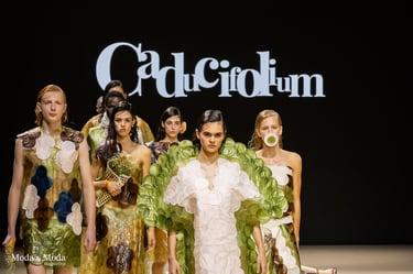 El desfile ha sido un verdadero escaparate de la innovación de CADUCIFOLIUM, donde la propuesta estética se une a un mensaje de respeto por el medio ambiente y la artesanía española. La firma apuesta por un diseño que no solo sorprende visualmente, sino que también transmite un compromiso con la moda consciente y responsable.