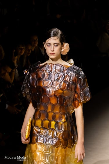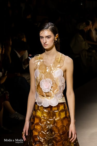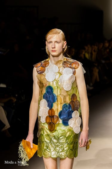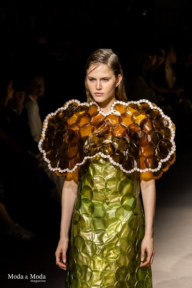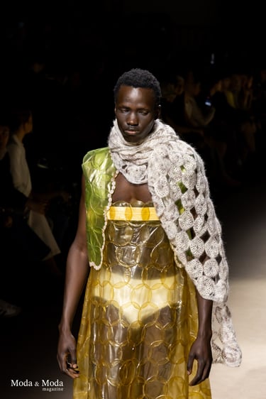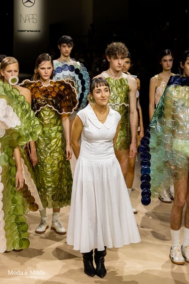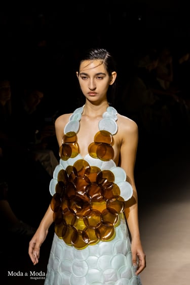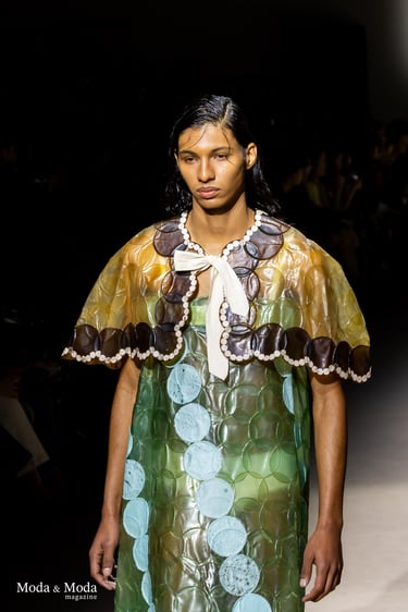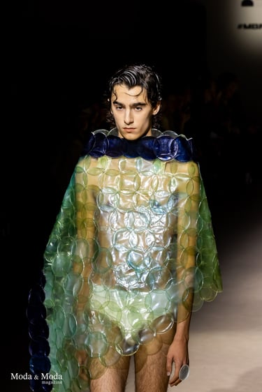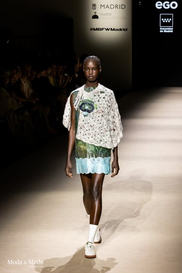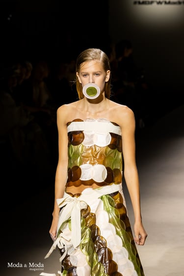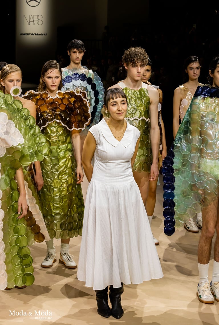 El desfile ha sido un verdadero escaparate de la innovación de CADUCIFOLIUM, donde la propuesta estética se une a un mensaje de respeto por el medio ambiente y la artesanía española. La firma apuesta por un diseño que no solo sorprende visualmente, sino que también transmite un compromiso con la moda consciente y responsable.