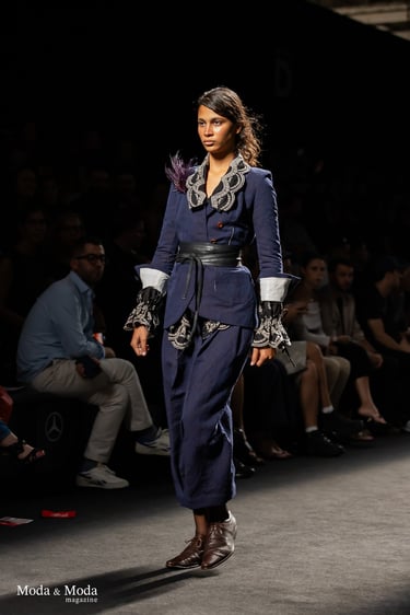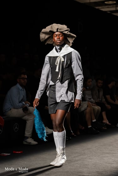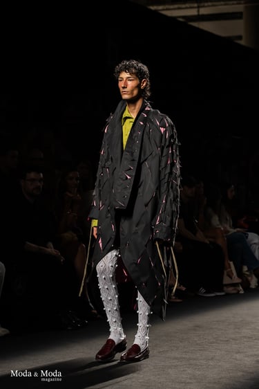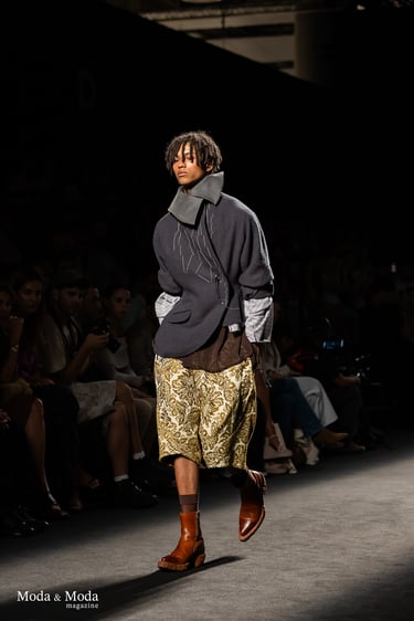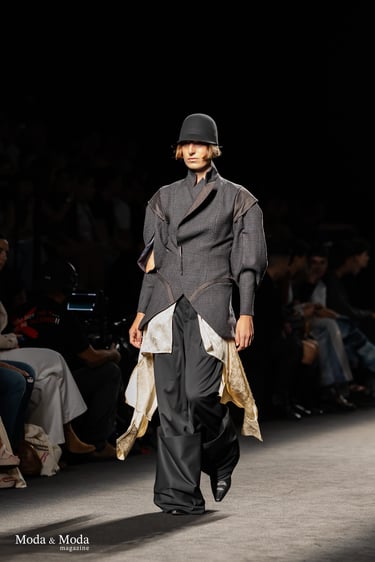 Con esta colección Asier Quintana demuestra madurez conceptual y una puesta en escena potente que combina escala, emoción y memoria. Es una colección que no busca confort, sino confrontación, diálogo: entre épocas, entre códigos, entre espectador y diseñador.
