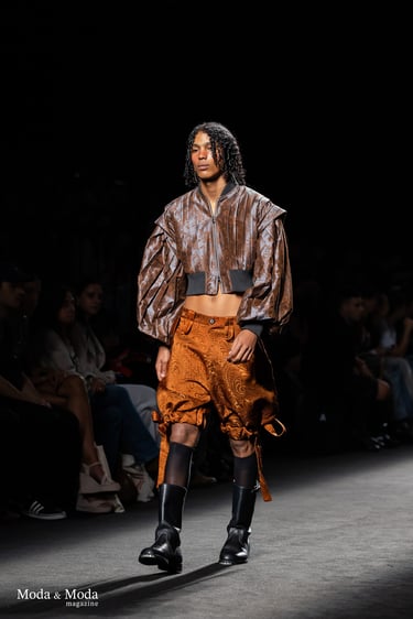 Asier Quintana sacudió la pasarela EGO de la Mercedes-Benz Fashion Week Madrid con su nueva propuesta titulada “Crisis. The journey of the decadent and tormented mind”, una colección primavera-verano 2026 que no deja indiferente
