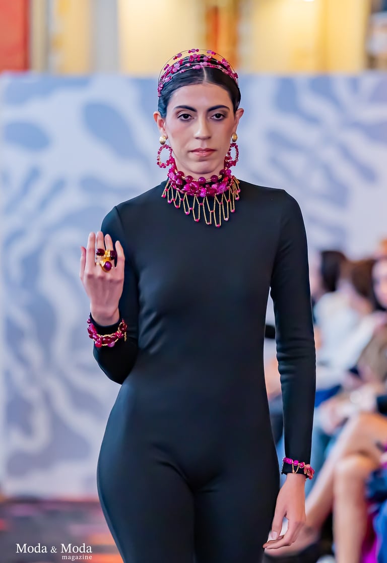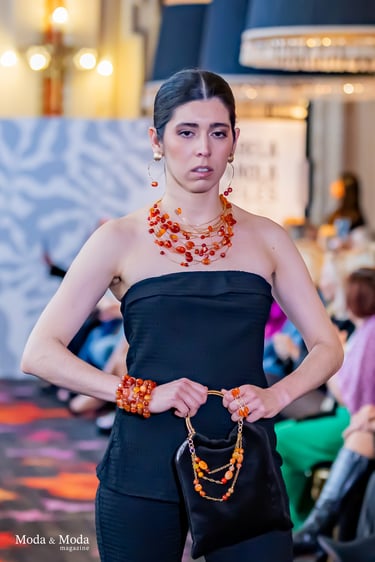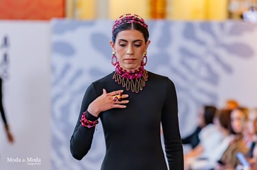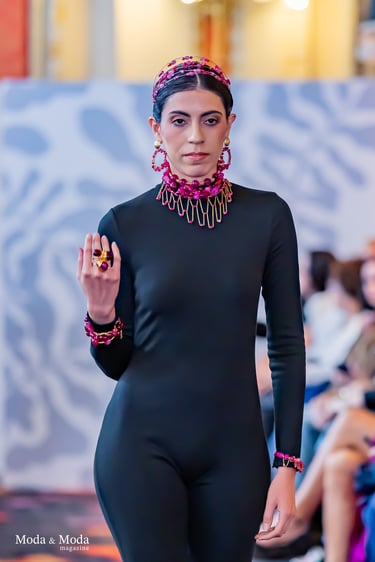 Fiel a su lenguaje creativo, Ana Barrios convierte el adorno en discurso y la pieza en relato. “Raíces” surge desde lo esencial, desde aquello que resiste al paso del tiempo: los vínculos, la memoria cultural, la fortaleza interna y el sentido de pertenencia.