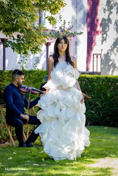 «Shakti» es una propuesta que fusiona moda, arte y ética, invitando a una reflexión sobre la importancia de vestir con conciencia, autenticidad y respeto hacia el planeta y uno mismo. MARIA LAFUENTE en el palacete de Villa Roza distrito de Hortaleza presentando su colección Shakti