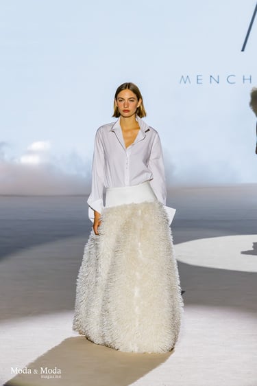 Menchen Thomas presentó su colección “Ethereal Bloom” en la MFWM, reafirmando su estilo caracterizado por la delicadeza, la feminidad y el cuidado artesanal.