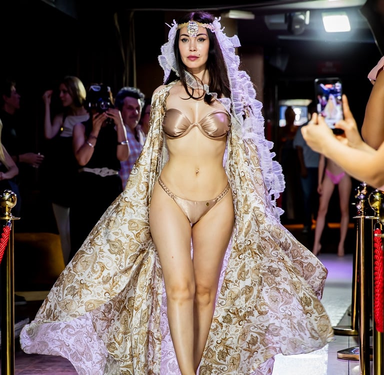 Elisabet Beauty presentó una colección que rinde homenaje a la fuerza y feminidad de las diosas modernas. Cada diseño combinó elegancia eterna con innovación atrevida, utilizando tejidos sofisticados y detalles únicos. La paleta de colores se centró en tonos neutros y metálicos, reflejando poder y sofisticación