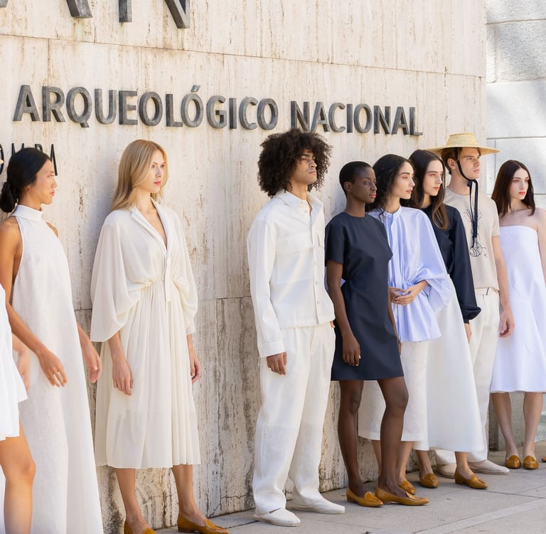 La colección número 78 de Devota & Lomba, presentada en el Museo Arqueológico Nacional de Madrid, representa una evocación profunda y delicada de la inocencia campestre a través de una propuesta que combina tradición, simplicidad y sofisticación. Modesto Lomba, creador vitoriano reconocido por su maestría técnica y elegancia sobria, ha elegido un escenario emblemático para mostrar una línea que se inspira en la luz y frescura de Sorolla, icono del impresionismo español, trasladando esa atmósfera luminosa y natural a la moda contemporánea.